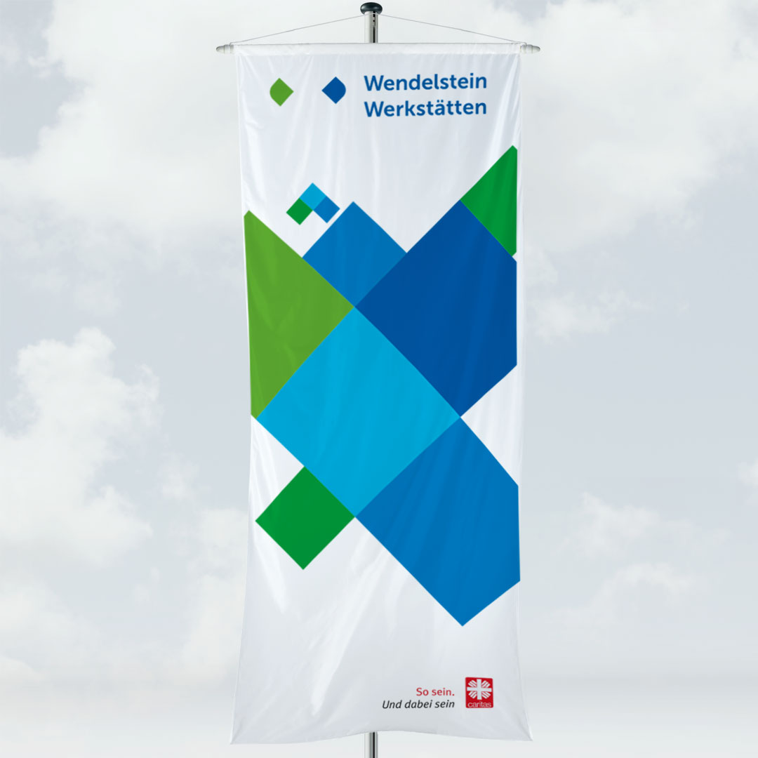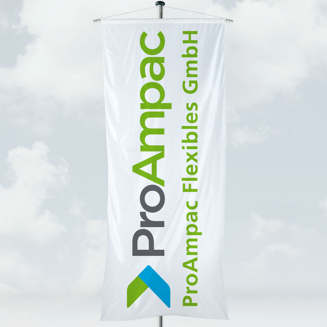 Die klassische Bannerfahne gehört zu den ältesten Fahnenarten. Sie wird meist von Städten, Gemeinden und Vereinen eingesetzt. Bannerfahnen können an jedem Fahnenmast befestigt werden und der Bannerstab verhindern das Zusammenklappen der bedruckten Fahne. Dadurch ist die Bannerfahne perfekt für Out of Home Kampagnen im öffentlichen Raum oder an gemieteten Fahnenmasten geeignet. Die Bannerfahne wird an der Oberkante mit einem Hohlsaum gefertigt; in diesen wird ein Holzstab eingeschoben und mit zwei weiß lackierten Holzabschlusseicheln sowie einer Seilaufhängung (mit Metallkarabinerhaken) befestigt. Wir empfehlen Ihnen, Bannerfahnen zusätzlich mit einer Flatterbremse oder einer Ringbandsicherung auszustatten. Durch diese Zusatzausstattung lässt sich ein unerwünschtes Hochwehen und starkes Schlagen der Fahne im Wind verhindern.