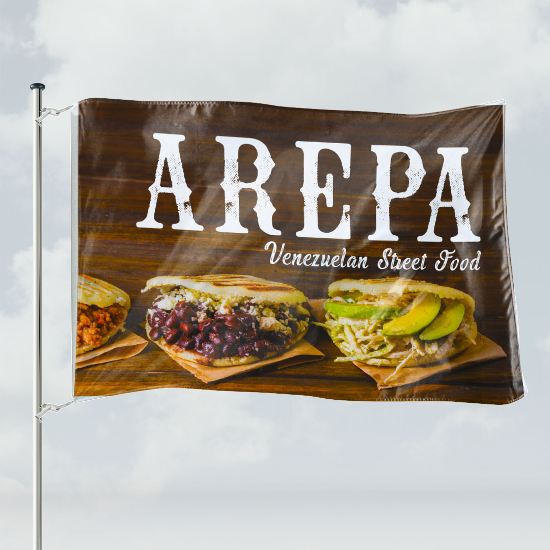 Die Hissfahne ist die Standardform unter den querformatigen Fahnen. Bei dommerado.de können Sie aus den gängigsten Standardgrößen Ihr gewünschtes Format wählen. Wir drucken Ihr gewünschtes Motiv in brillantem Textildruck.