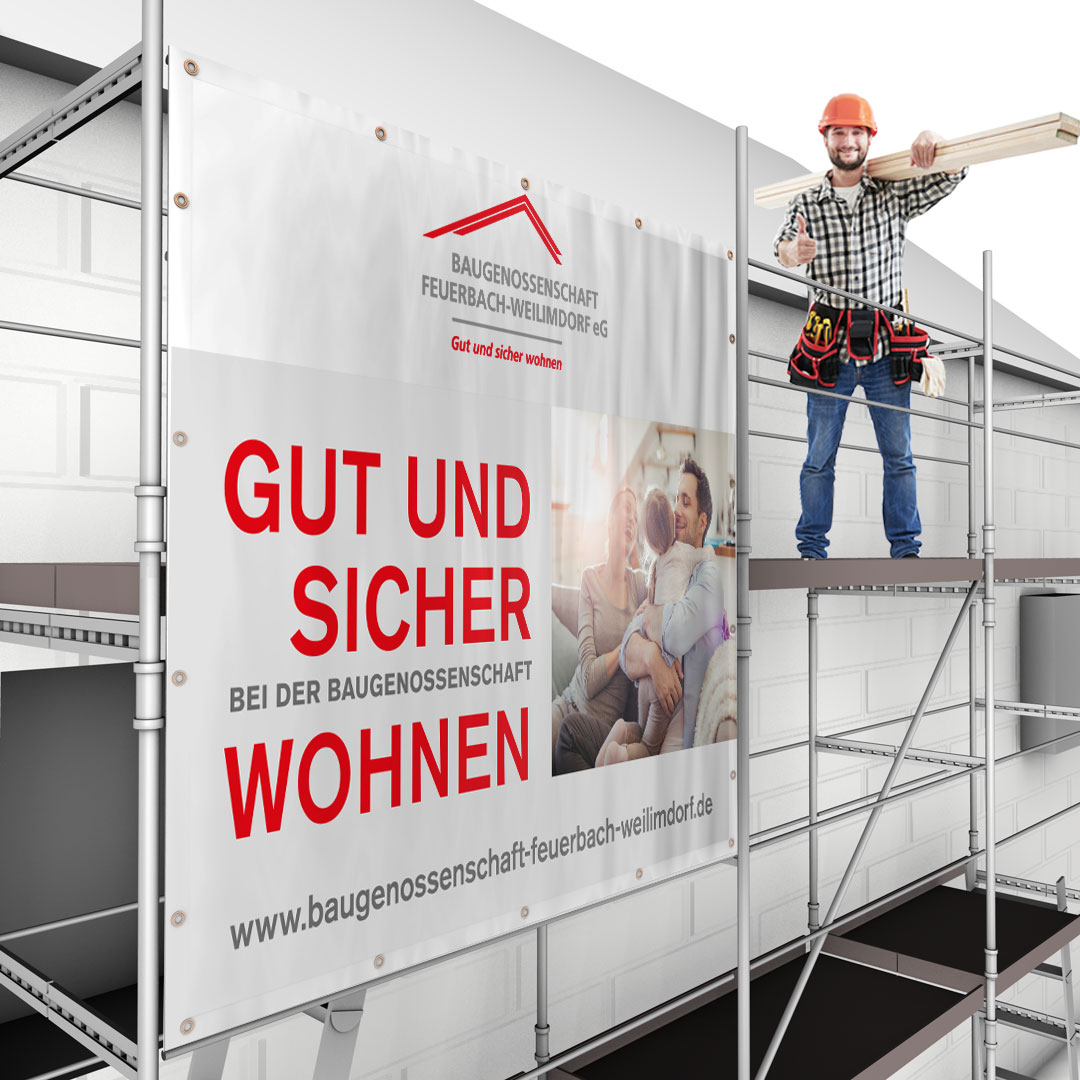 Die Gerüstplanen sind ideal als Bauschild, Bautafel, für die Werbung Ihres Handwerksbetriebs geeignet.