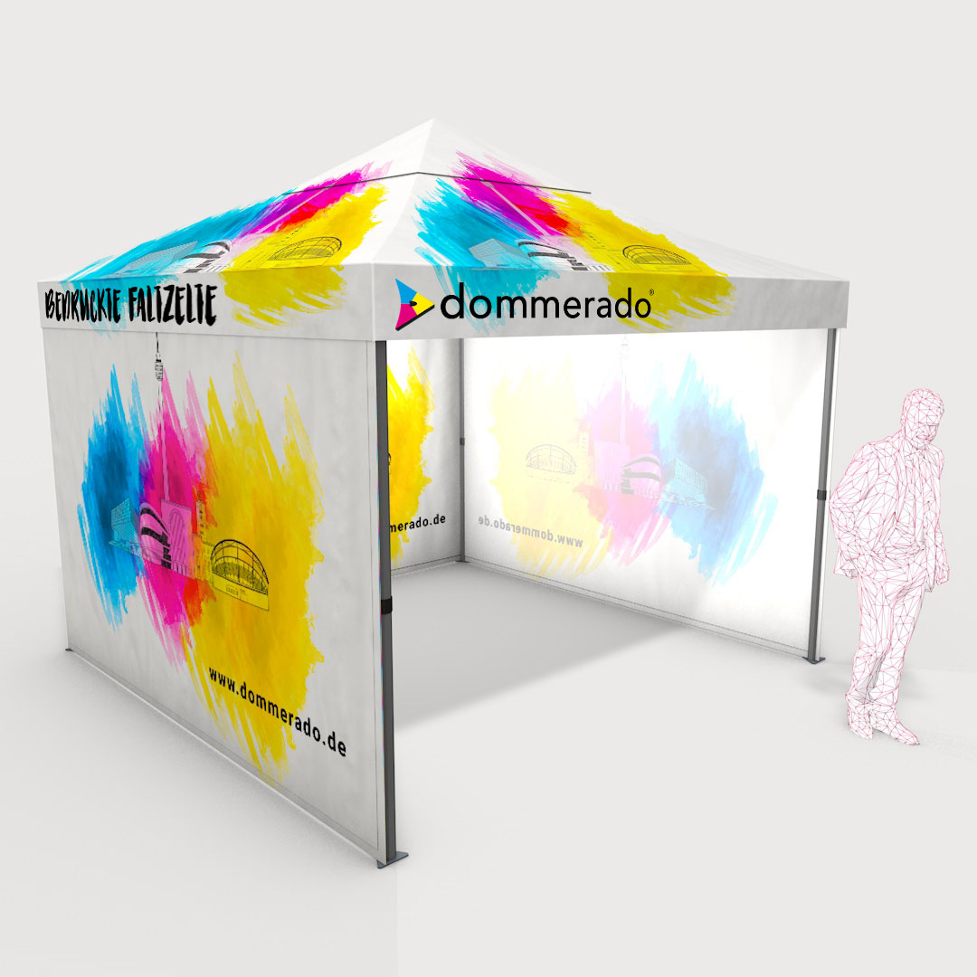 Stellen Sie sich in wenigen Schritten Ihr individuell bedrucktes Faltzelt zusammen.
